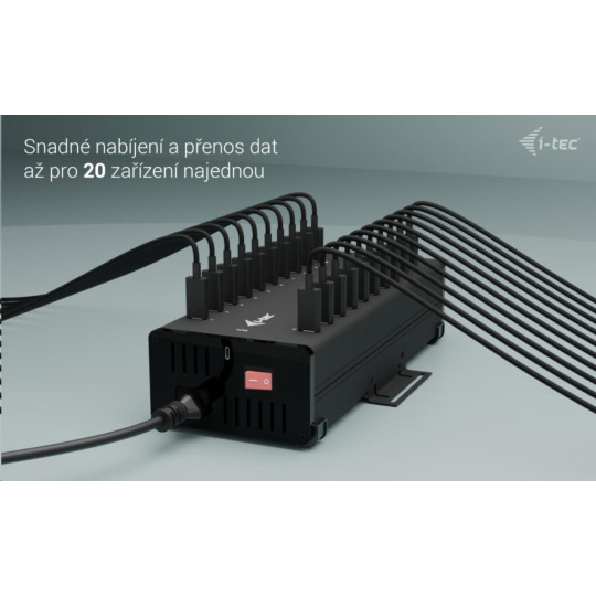 Tento moderní HUB nabízí 20 USB-C s funkcí Plug & Play a nabíjením až 15W na port. Díky tomu, že HUB má 20 USB portů, je možno nabíjet až 20 zařízení najednou.