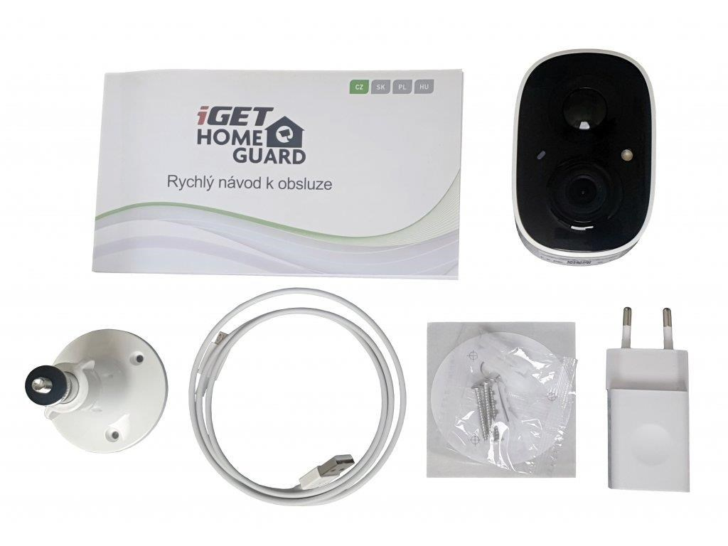 - Obsah balení: kamera iGET HOMEGUARD HGWBC351, rychlý návod k obsluze EN, CZ, SK, HU, napájecí adaptér 5V DC 1.5A, kabel USB/microUSB 1m, nastavitelný šroubovací držák pro upevnění kamery na stěnu/strop, hmoždinky a šroubky pro montáž, šablona s vyznačením montážních otvorů, nálepka s výstrahou o zabezpečeném objektu