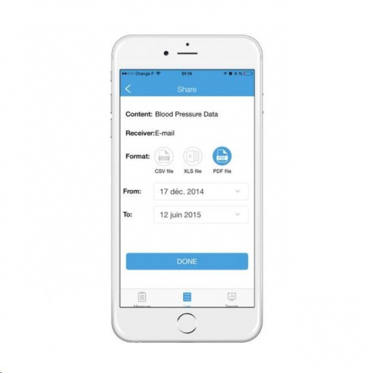 Aplikace iHealth MyVitals umožňuje naměřené hodnoty odeslat e-mailem v rámci rodiny, přátelům nebo osobnímu lékaři.