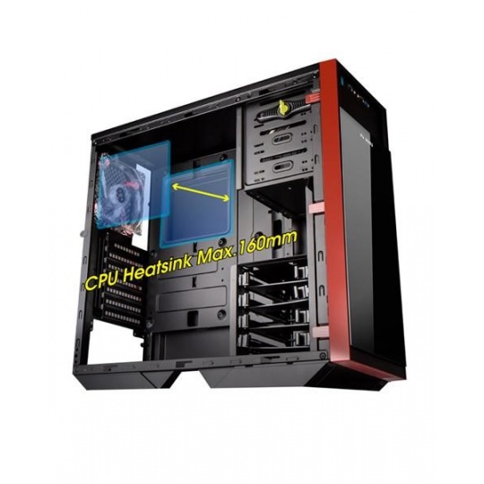Vnitřek skříně disponuje dostatečným prostorem pro rozšíření, lze do něj zabudovat mimo jiné i několik high-end grafických karet do maximální délky 408 mm, nebo CPU chladič až do velikosti 170 mm. Důležitým prvkem je také dostatečně velký prostor pro organizaci a vedení kabelů. Na spodu skříně je pak příhodně umístěn odnímatelný prachový filtr, který kryje spodní větrací otvor.