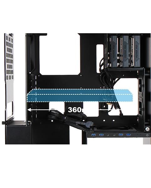 Stylová počítačová skříň 904 se skládá s jednodílné hlavní konstrukce z 4mm hliníkové slitiny a bočních ochranných panelů z tvrzeného skla. Elegantní eloxovaná přední strana spolu s In Win LED logem vytváří nádherný dojem mistrovského díla.