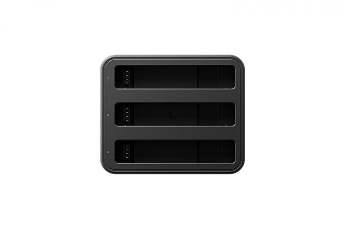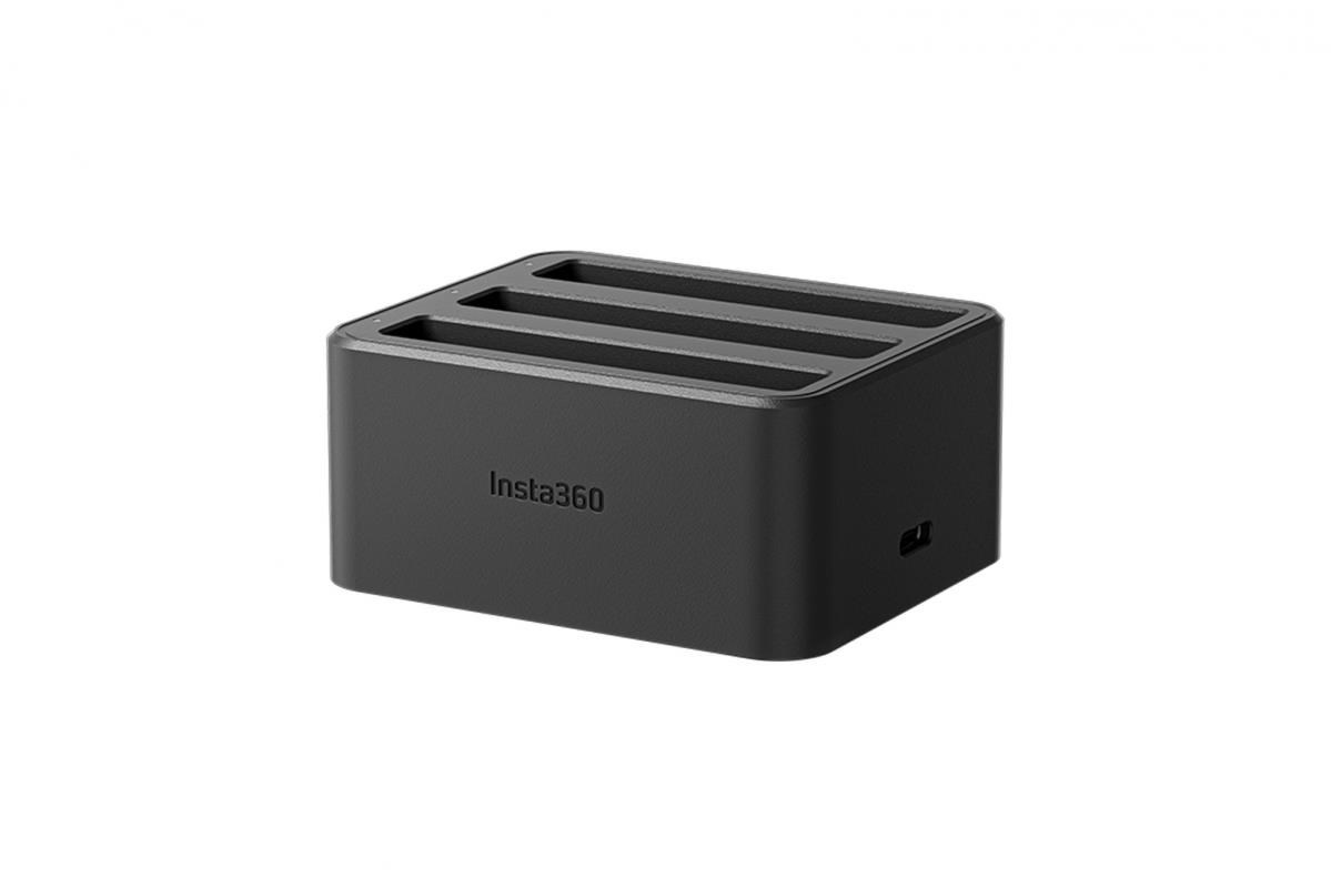 Nabíjecí hub pro tři baterie pro kameru Insta360 X4. Hub nabije 2290 mAh akumulátor za 43 minut (za 26 minut na 80%)..... více