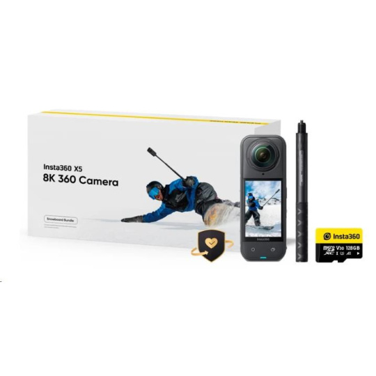 Obsah balení Akční kamera Insta360 X5Action invisible selfie stick128 GB microsd paměťová kartaFlexiCare na 2 rokypřenosné pouzdroUSB C/C kabelhadřík na čištění čočeknálepky na čištění Technická specifikace X5 Rozlišení videa 360 ° Mode: 8K: 7680x3840@30/25/24fps 5,7K: 5760x2880@60/50/30/25/24fps 4K: 3840x192... více