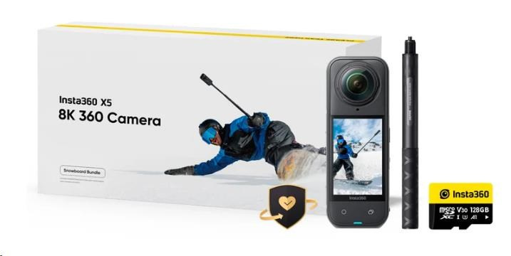 Obsah balení Akční kamera Insta360 X5Action invisible selfie stick128 GB microsd paměťová kartaFlexiCare na 2 rokypřenosné pouzdroUSB C/C kabelhadřík na čištění čočeknálepky na čištění Technická specifikace X5 Rozlišení videa 360 ° Mode: 8K: 7680x3840@30/25/24fps 5,7K: 5760x2880@60/50/30/25/24fps 4K: 3840x192... více