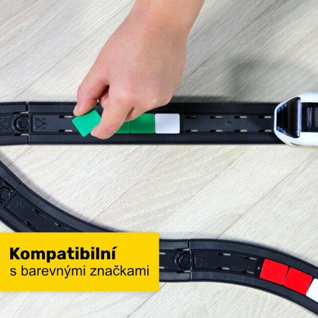 Intelino - Sada kolejnic a barevných značek Máte doma Intelino a omrzelo vás pořád jezdit dokolečka na jednoduché dráze? Víc zábavy na velkém kolejišti si s Intelinem užijete díky extra dávce 20 různých oboustranných kolejnic a 40 barevných značek. Staňte se dispečerem provozu a řiďte provoz pomocí barevných příkazovýc... více
