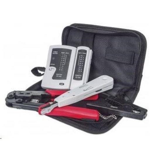 Intellinet 4-Piece Network Tool Kit, sada nářadí: cable tester, krimpovací kleště, LSA narážecí nástroj, stripovač