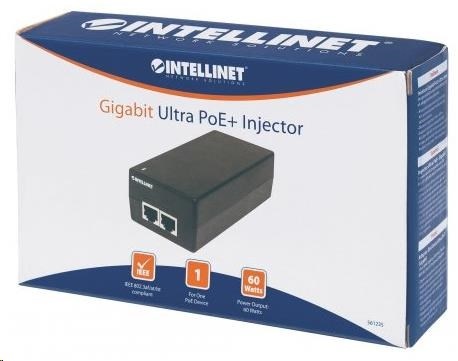 Intellinet Gigabit Ultra PoE+ Injector, 1x 60W port, IEEE 802.3bt, IEEE 802.3at/af
