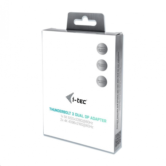 i-tec THUNDERBOLT™ 3 Dual Display Port video adaptér pro Thunderbolt™ 3 macOS a Windows notebooky a tablety, podporuje 1x 5K 60Hz monitor/TV nebo 2x 4K 60Hz monitor/TV.... více