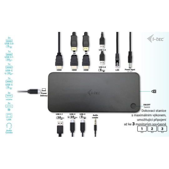 i-tec USB 3.0 / USB-C / Thunderbolt, 3x 4K Docking Station + Power Delivery 100W