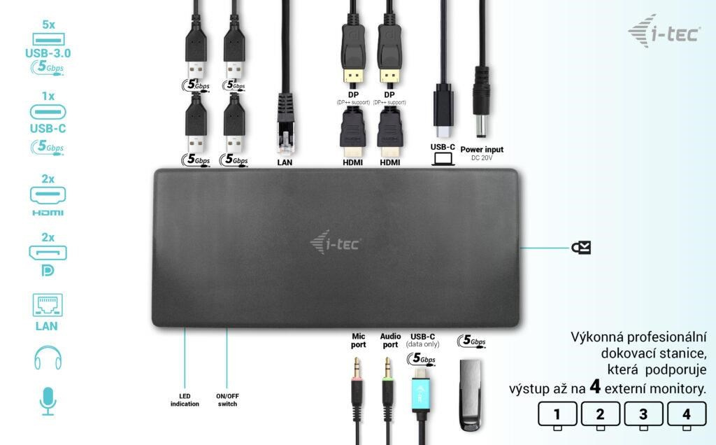 Profesionální dokovací stanice USB-C, která podporuje výstup až na čtyři externí monitory. Tato dokovací stanice je vybavena hybridním zpracováním obrazu: je postavena na technologiích DisplayLink a USB-C video přenosu, což jí umožňuje zpracování obrazu až na zmíněných čtyřech zobrazovacích zařízeních.
