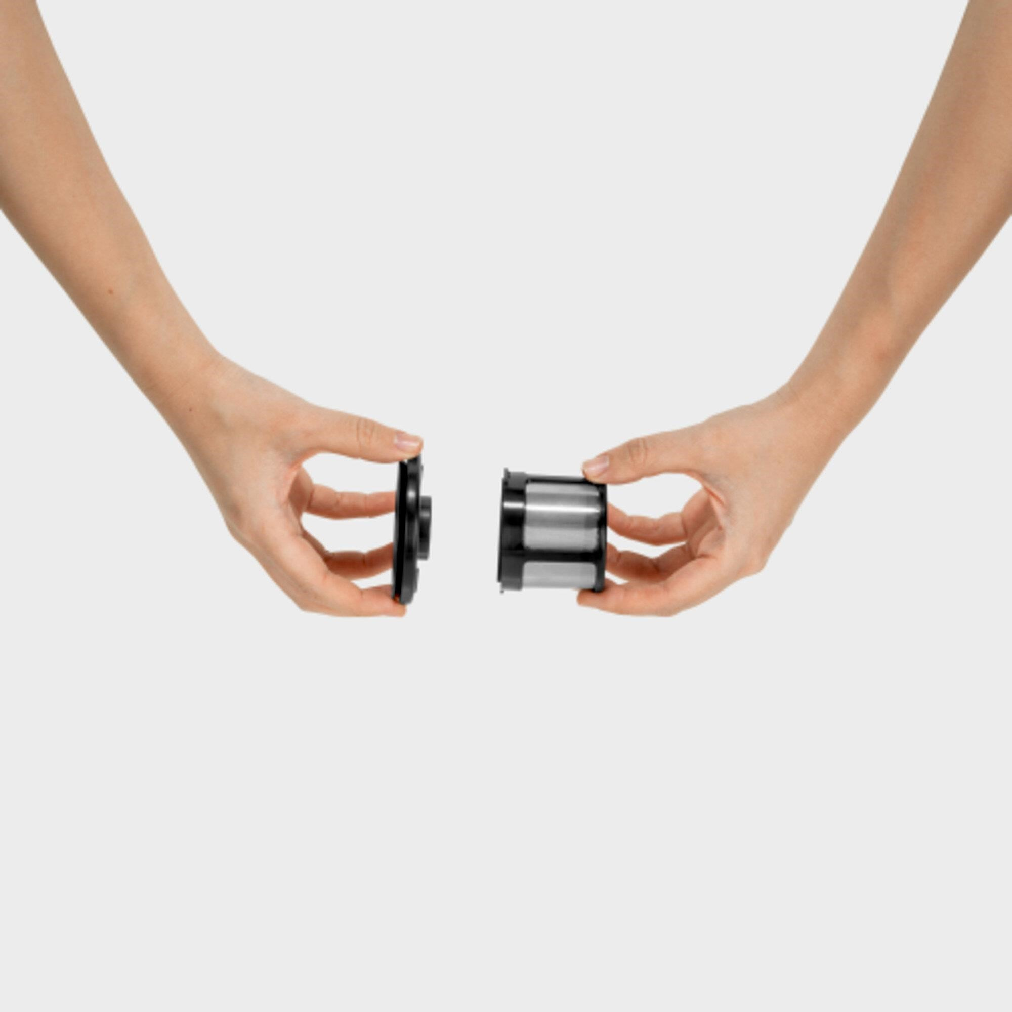 Ideální kombinace jemné ocelové síťky na hrubé nečistoty a vlasy a HEPA filtru.