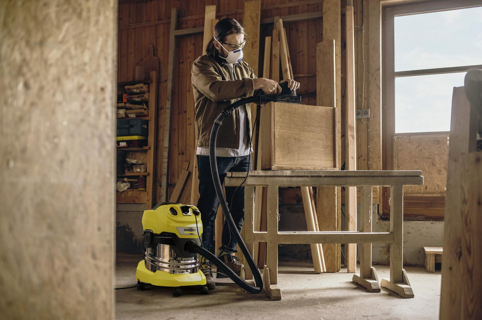 Mimořádně výkonný a energeticky úsporný vysavač s příkonem 1000 W: zařízení mokro-suchého vysavače WD 4 P S V-20/5/22, sací hadice a podlahová hubice s klipy jsou optimálně sladěny pro dosažení nejlepších výsledků úklidu. Mokré, suché, jemné nebo hrubé nečistoty jsou odstraňovány nepřetržitě bez výměny filtru. Přístroj se dodává s robustní a nárazuvzdornou 20litrovou nádobou z nerezové oceli, 5metrovým kabelem, 2,2metrovou sací hadicí, klipovou podlahovou hubicí, plochým skládaným filtrem a vliesovým filtračním sáčkem. Vestavěná elektrická zásuvka s automatickým vypínačem usnadňuje práci s elektrickým nářadím. Díky patentované technologii lze filtr ve vysavači na mokré a suché vysávání snadno a rychle vyjmout - aniž by přišel do styku s jakoukoli nečistotou. Tam, kde vysávání není možné, pomůže přídavná funkce foukání. Odnímatelná rukojeť umožňuje připojit příslušenství přímo k sací hadici. Hadici lze kompaktně uložit na hlavě přístroje. Trubky a podlahovou hubici lze také rychle a pohodlně zaparkovat na nárazníku. Mezi další výhody patří uzamykací systém "Pull & Push" pro snadné otevírání a zavírání nádoby a ergonomicky tvarovaná rukojeť pro pohodlné přenášení zařízení.