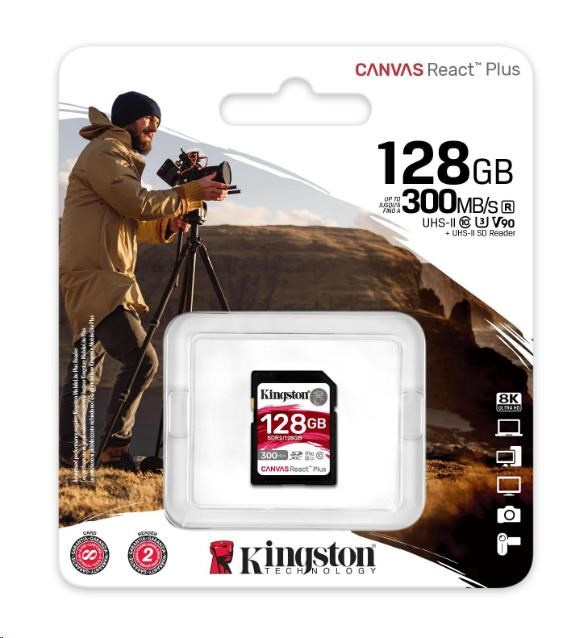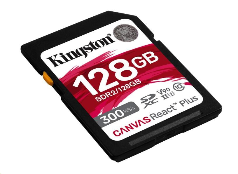 Kingston SDXC karta 128GB Canvas React Plus SDXC UHS-II 300R/260W U3 V90 for Full HD/4K/8K