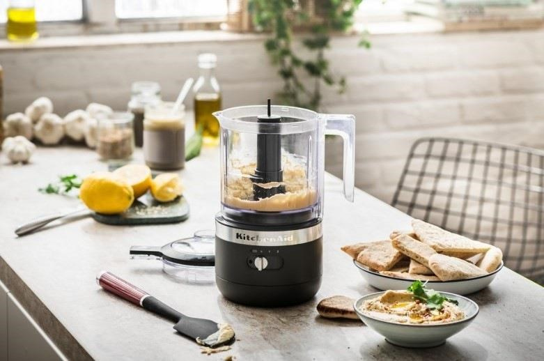 Hledáte praktického pomocníka do vaší kuchyně? Vsaďte na poctivou přípravu, která vede k těm nejlepším a nejchutnějším výsledkům. Kuchyňský robot KitchenAid 5KFCB519EBM je bezdrátový model food processoru, který se stane nepostradatelnou součástí vaší kuchyně. Zrychlí a zefektivní ty činnosti, které při přípravě jídel zabírají spoustu času. Pracovní nádoba o objemu 1,18 l je opatřena víkem s otvorem, kterým lze postupně přidávat ingredience bez nutnosti zastavení provozu. Požadovaných výsledků dosáhnete díky dvěma rychlostem a pulzní funkci, počet otáček je v rozmezí 2 600 až 3 500 ot./min. Velkou přednostní food processoru jsou také kompaktní rozměry a nízká hmotnost, představuje perfektní řešení i do malých domácností. Pokud chcete volně tvořit bez omezování přívodním kabelem, je pro vás tato pomocná síla jako dělaná.