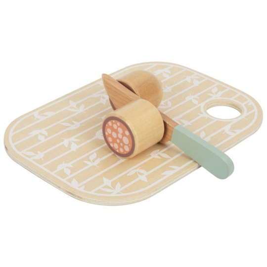 Sada dřevěných krájecích potravin uložená v praktickém a snadno přenosném boxu 3v1 umožní dětem přichystat hostinu doma i na návštěvě. Krájecí ovoce, zeleninu a další potraviny mohou děti pomocí dřevěného nože krájet (porcovat) na poloviny a pomocí suchého zipu poloviny opět spojovat. S krájecími potravinami si děti vyzkouší krájení bezpečným dětským způsobem a zdokonalí své dovednosti..