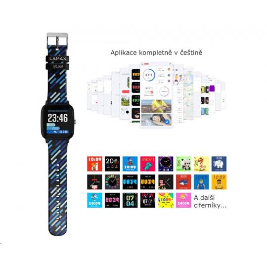 Chytré hodinky pro děti LAMAX BCool, výdrž až 7 dní, měření kroků, tepu a sportovních aktivit, analýza spánku, voděodolnost IP68, ovládání hudby, superjemný 1,4“ displej, podpora Android/iOS, 4 vzdělávací hry, dva řemínky v balení, slimfit design pro dětskou ruku, čeština.... více