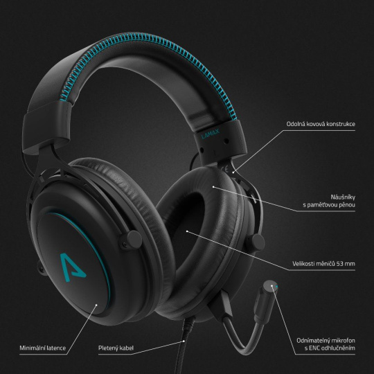 Ergonomická konstrukce a příjemné polstrování ti zajistí ultimátní pohodlí při plnění sebedelších questů. Náušníky jsme navíc vybavili paměťovou pěnou, která se dokonale přizpůsobí, takže po pár minutách zapomeneš, že máš vůbec něco na hlavě. Mysleli jsme i na design – kvalitní kovová konstrukce a ikonické LAMAX barvy mezi gamery jen tak nezapadnou.