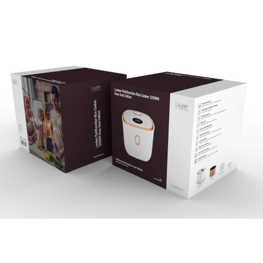 Vařte s lehkostí, chutně a stylověEfektivita, snadné použití a design mají společného jmenovatele, je jím víceúčelový rýžovar Lauben Multifunction Rice Cooker 1200WR Rose Gold Edition. Stiskem jediného tlačítka uvaří všechny druhy rýže na správnou tvrdost a 6 přednastavených funkcí vykouzlí další pokrmy jako kaše nebo polévky. Čas některých programů si však na intuitivním dotykovém displeji můžete nastavit i manuálně. Díky funkci odloženého startu lze mít jídlo připraveno už po návratu domů, opozdilci zase ocení funkci Keep Warm, která udrží pokrm teplý bez rozvaření. Porce nasytí jednotlivce i páry, jež pak mají více času pro sebe, protože ani údržba nezabere čas. Vnitřní hrnec lze dát do myčky. Bezpečné používání zajišťuje ochrana proti přetečení a technologie Cool Touch proti popálení. Rýžovar bude ozdobou každé kuchyně, kterou rozzáří trendy rose gold barvou, a přitom nezabere takřka žádné místo.