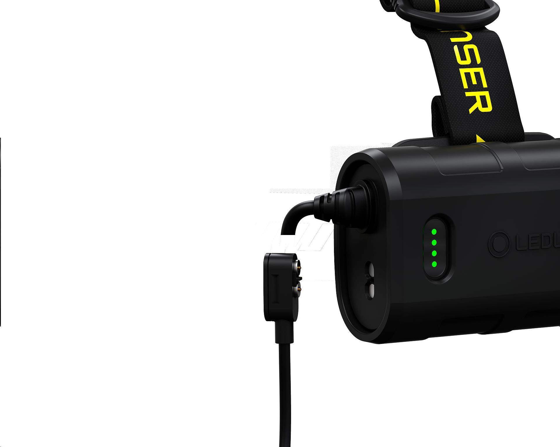Svítilnu lze dobíjet pomocí nabíječky s odolným magnetickým konektorem.