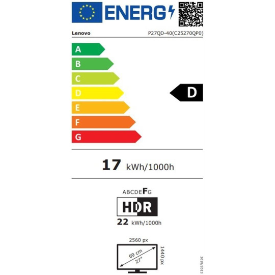 LENOVO LCD P27QD-40+MC60 - 27",ECO-IPS,16:9,2560x1440,120Hz,350cd/m2,1500:1,4ms,HDMI,DP,DPout,DC,USBHub,USB-C,RJ45,Pivot