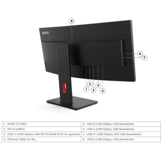 LENOVO LCD T34WD-40+MC60 - 34",VA,21:9,3440x1440,120Hz,300cd/m2,3000:1,4ms,HDMI,DP,USBHub,USB-C(100W PD),RJ45,Nákl,Zdvih