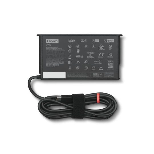 Síťový adaptér Lenovo 135 W (USB typu C) nabízí rychlé a efektivní nabíjení doma, v kanceláři nebo na cestách. Je to ideální náhradní nebo náhradní napájecí adaptér pro vaše zařízení ThinkPad.