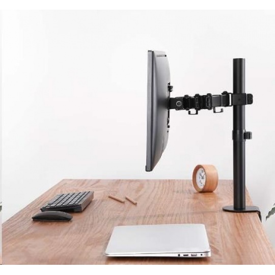 Levný kvalitní stolní držák monitoru Fiber Novelty F10 Otočný, sklopný, výškově i délkově nastavitelný držák monitoru 13-32", funkce PIVOT, 2 typy uchycení na stolovou desku, nosnost 8kg Levný, přesto kvalitní stolní držák pro uchycení LCD LED OLED monitoru s úhlopříčkou 13 až 32 palců. Po uchycení monitoru na držák oceníte zvětšený prostor na stole, monitor navíc můžete dle libosti otáčet do stran, naklápět, vysouvat a i výškově polohovat, monitor lze rotovat pro horizontální nebo vertikální otočení. Držák podporuje VESA standardy 75x75 a 100x100. Držák je možné zatížit monitorem s hmotností až 8kg. Ramena jsou osazena úchyty pro zafixování kabeláže. V balení naleznete 2 typy uchycení na stolovou desku, která může mít průměr 10mm až 88mm. Dodáváme v černé barvě, balení obsahuje potřebný instalační materiál. Levný držák na monitor 13-32 palců Fiber Novelty F10 splní požadavky i náročným zákazníkům, přitom za zlomek ceny jiných držáků na monitory. Otočný, sklopný, délkově a výškově stavitelný, funkce pivot, vedení kabeláže, 2 úchyty na stolové desky... Levný stolní držák na monitor do Vaší pracovny nebo kanceláře - plně nastavitelný, výborná kvalita - Fiber Novelty F10 Technické údaje: nosnost 8kg podpora VESA standardu 75x75 a 100x100 doporučujeme na monitory s úhlopříčkou 13 až 32" otáčení do stran +/- 360° náklon +/- 45° vysunutí monitoru až 421mm nastavení výšky, max. 420mm nastavení tuhosti chodu ramen uchycení na stolovou desku o průměru 10 až 88mm 2 typy uchycení na stolovou desku úchytky na kabeláž montážní materiál barva černá záruka 3 roky.