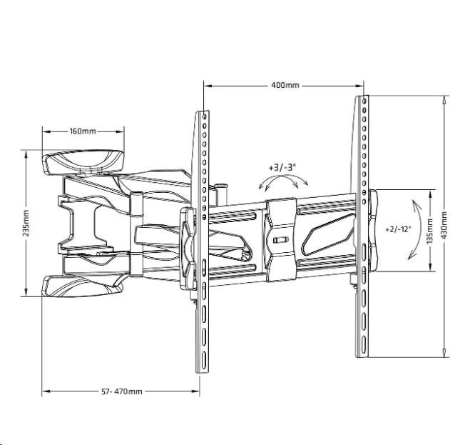 Levný otočný držák LCD Fiber Mounts DELTA781 Cenově výhodný spolehlivý a bezpečný držák na Tv 26-60", otočný, sklopný, délkově nastavitelný Potřebujete zavěsit televizi na spolehlivý a bezpečný držák a nechcete přitom moc utrácet? Můžeme Vám doporučit nástěnný Tv držák Fiber Mounts DELTA781. Vysoká nosnost 45kg, dvě velmi pevná ramena, zajištění televizoru proti vysazení, větší instalační plocha pro ukotvení do stěny. Držák nabízí pohodlné polohování televizoru - otáčení na obě strany, naklonění obrazovky mírně nahoru nebo dolů, nastavení vzdálenosti od zdi dle potřeby. Výsuv obrazovky probíhá v ose uchycení, proto je držák vhodný pro ukotvení nejen na stěnu, ale i do připravených výklenků nebo do obývacích stěn. Pokud se Vám nepovedla montáž přesně do roviny a obrazovka není po zavěšení ve vodováze, není potřeba provádět novou instalaci, snadno upravíte rovinu televize bez nutnosti reinstalace. Nástěnný úchyt i ramena držáku jsou opatřeny designovými krytkami, pod kterými můžete skrytě vést veškerou kabeláž. Barevné provedení je černé, na držák poskytujeme prodlouženou záruku na 3 roky. Levný, bezpečný a spolehlivý držák na všechny Tv s hmotností do 45kg, podpora VESA 100x100 až 400x400, otočný do stran, délkově nastavitelný, sklopný, TOP kvalita za skvělou cenu - držák Fiber Mounts DELTA781 Vynikající televizní držák za skvělou cenu Fiber Mounts DELTA781 - otáčení do stran, délkové nastavení, náklon, korekce roviny, vedení kabeláže, spolehlivost a bezpečnost. Technické údaje: nosnost 45kg podpora VESA standardu 100x100 až 400x400 doporučujeme na televizory s úhlopříčkou 26" až 60" vhodný na všechny typy televizorů - LCD, LED, OLED, QLED, plazma, 3D, Smart, prohnuté vhodný na všechny značky televizorů - Samsung, LG, SONY, Panasonic, ECG, GoGEN, Hisense, Changhong, Hyundai, Orava, Philips ... nastavitelná vzdálenost od zdi 57mm až 470mm otáčení Tv na obě strany +/- 75° náklon obrazovky nahoru i dolů +2° až -12° korekce roviny obrazovky +/- 3° instalační plocha na stěnu o rozměrech 160mm x 235mm (šířka x výška) zajištění televizoru proti vysazení integrovaná vodováha pro usnadnění montáže velmi snadné polohování bezpečná a spolehlivá ocelová konstrukce designové kryty ramen pro skryté vedení veškeré kabeláže součástí balení je univerzální instalační sada (šrouby, vruty, hmoždinky, podložky) barevné provedení černé prodloužená záruka 3 roky Spolehlivý držák na všechny značky Tv - Sony, Samsung, Panasonic, GoGEN, Hyundai, Panasonic, Sencor, Philips, Changhong, Hisense, Hitachi - držák Tv Fiber Mounts DELTA781 Držák podporuje VESA standardy pro zavěšení televizorů: VESA 100x100 VESA 200x100 a 100x200 VESA 200x200 VESA 300x100 a 100x300 VESA 300x200 a 200x300 VESA 300x300 VESA 400x100 a 100x400 VESA 400x200 a 200x400 VESA 400x300 a 300x400 VESA 400x400 Držák Tv Fiber Mounts DELTA781 je vhodný pro zavěšení všech typů, značek a velikostí Tv, které mají hmotnost do 45kg a které podporují některý z výše uvedených VESA standardů. Na velikosti televizoru přímo nezáleží, můžete zavěsit i větší televizory za splnění výše uvedených podmínek..