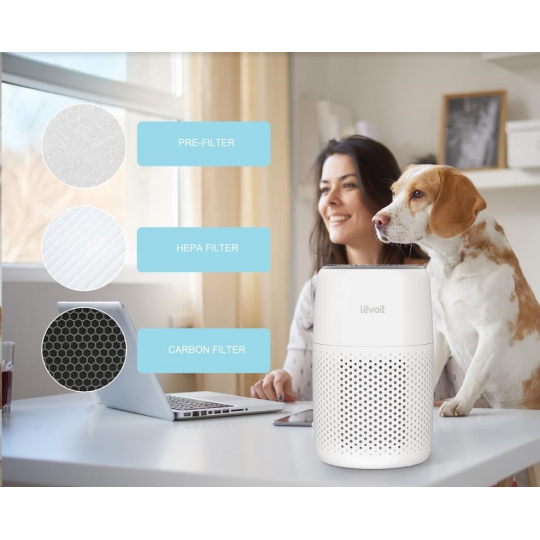 Poslední vysoce efektivní karbonový filtr potom už jenom odfiltruje kouř, pachy a výpary a jiné nejmenší částice. Celkově čistička Levoit Core Mini zachytí až 99,97% všech nečistot až miniaturní velikosti 0,3 mikronů a vám zůstane jenom čerstvý a čistý vzduch.