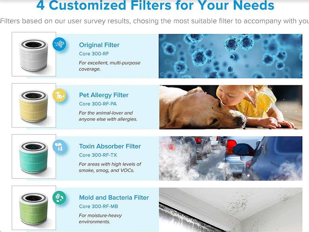 Kompatibilní s čističkou vzduchu Levoit CORE300-RAC a CORE300S.