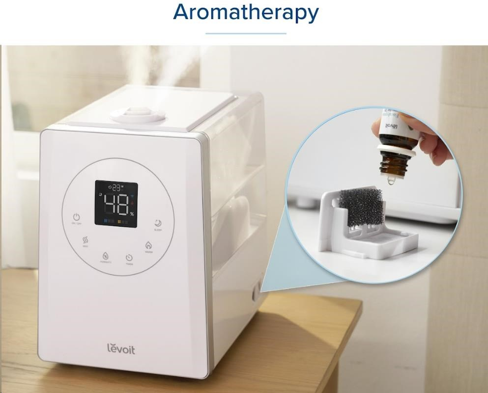 Zvlhčovač Levoit LV600S můžete použít také na provonění místností a vytvořit tak příjemnou relaxační atmosféru. Aromatické oleje se dávkují do samostatné nádobky, což je lepší a efektivnější způsob jejich aplikace. Éterické oleje mají blahodárné účinky na celé lidské tělo. Citrusové vůně osvěžují prostředí, levandule vám pomůže ke zklidnění těla a od stresu, eukalyptus zklidní bolest hlavy a máta uvolní horní cesty dýchací. Balení také obsahuje 3 aromatické filtry a absorpční polštář.