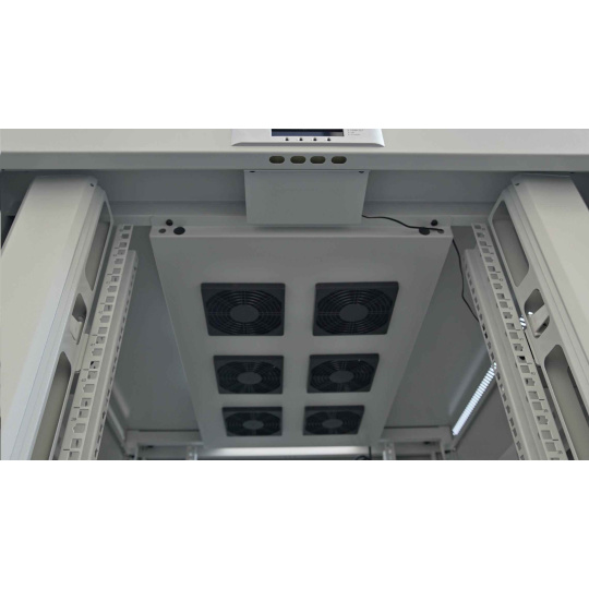 LEXI-Net 19" stojanový rozvaděč 42U 800x1000 rozebiratelný, ventilační jednotka, termostat, kolečka, 600kg, sklo, šedý