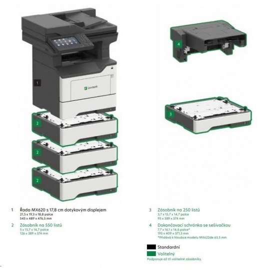 LEXMARK Multifunkční ČB tiskárna MX622adhe, A4, 47ppm, 2048MB, barevný LCD displej, duplex,DADF, USB 2.0, LAN,