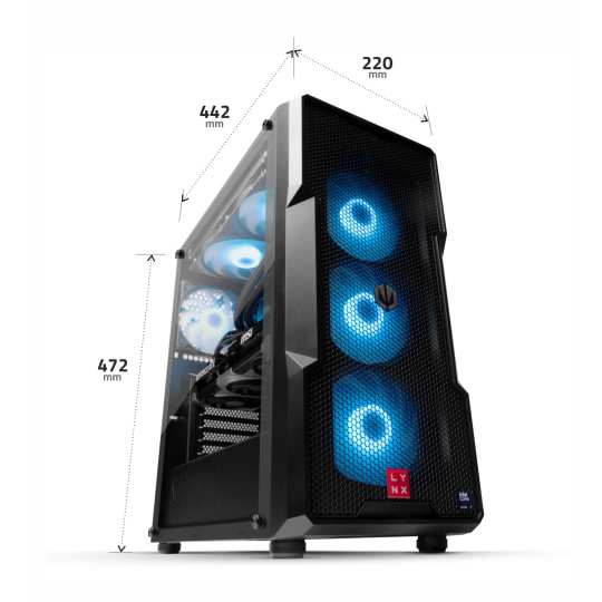 Prostorná a elegantní skříň s kvalitním airflow a ARGB podsvícením. Praktické vnitřní uspořádání a moderní design z ní dělají perfektní základ pro každou herní sestavu.