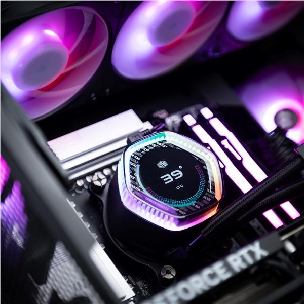 Výkonné vodní chlazení se třemi ventilátory poskytuje tichý a efektivní provoz i při maximálním vytížení. Zajišťuje nízké teploty a dlouhou životnost komponent.