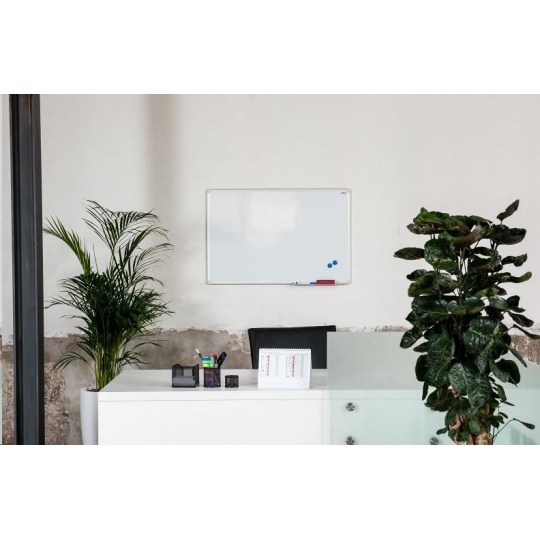 Magnetická tabule AVELI má bílý lakovaný povrch, elegantní rám z kvalitního eloxovaného hliníku, jehož součástí je praktická odkládací lišta na popisovače. Na tabuli je možné psát stíratelným fixem. Tabule má světle šedé plastové rohy, které zakryjí upevnění na zeď.