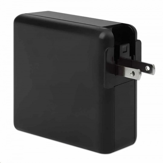 The Manhattan 4-in-1 Travel Wall Charger and Powerbank 8,000 mAh provides you with incredibly useful functions on one device. Use it as a USB wall charger to charge smartphones, tablets, eReaders, headphones and more from two USB-A and one USB-C port with per-port power up to 5 V / 2.4 A. You can also skip the wires altogether and charge compatible mobile devices on the 5 W wireless charging pad. For even more convenience, this all-rounder lets you charge on the go without plugging into a socket since it's also an 8,000 mAh powerbank. Its convenient digital number display lets you check the remaining battery at any time. Recharge the powerbank directly via AC on a power outlet or through its USB-C port. Finally, if you're an international traveler, you'll love its foldable US and swappable UK and EU plugs that let you charge devices in the many regions that offer these outlet types.
