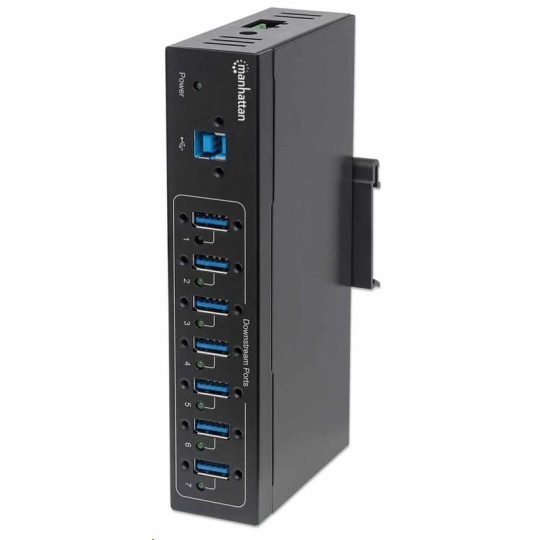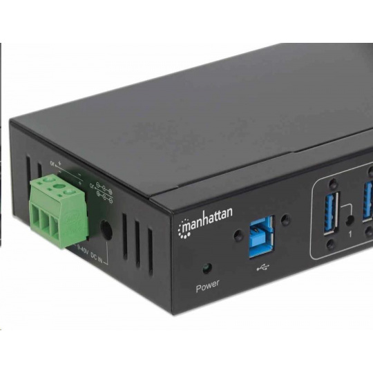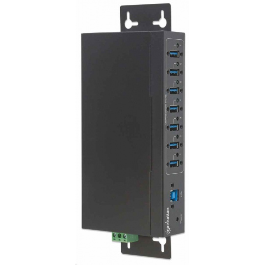 The Manhattan 7-Port Industrial USB 3.0 Hub easily expands and secures your USB access in industrial environments and high traffic areas. Versatile, sturdy mounting options allow the hub to be secured to a wall, used on a desktop or added to a DIN rail. This hub creates more open connection points for USB 3.0 devices, such as external hard drives and printers. Built-in screw-lock ports offer security for cables and additional stability from vibrations in the surrounding environment. It is backward compatible with previous USB standards to provide flexibility for attached devices. The Manhattan 7-Port Industrial USB 3.0 Hub offers plug-and-play, hot-swap capabilities and data transfer speeds up to 5 Gbps.