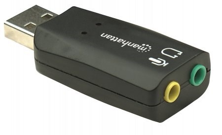 Ideal for desktop, notebook and netbook computers, the Manhattan Hi-Speed USB 3D Sound Adapter instantly creates microphone-in and audio-out ports through any USB port. Easily connect headsets, microphones and speakers equipped with 3.5 mm cables that are too short to comfortably reach ports with awkward or inconvenient locations. With Plug and Play and hot-swap capabilities, it easily replaces inoperative sound cards, bypasses damaged audio ports and improves access without special drivers or software. A built-in Class-B power amplifier utilizes USB bus power, eliminating the need for external energy supplies or additional cables. Support for 3-dimensional audio and virtual 5.1 surround sound and built-in sound effects with a 10-band equalizer deliver rich, high-quality experiences with familiar USB convenience and functionality.
