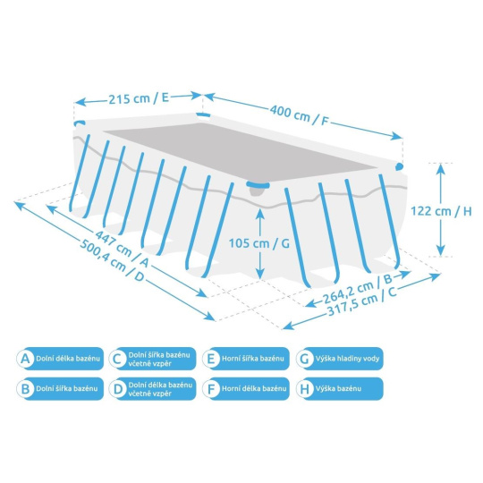 Bazénovou plachtu vypíná pevná kovová konstrukce, která umožňuje, aby byly bazény vyráběny i ve velkých rozměrech. Široká vodní plocha tak poskytuje dostatečný prostor ke koupání.
