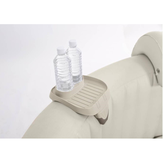 Praktický držák nápojů, který slouží k odkládání drobností nebo malého občerstvení a má dva otvory na lahve. Držák je určen pro pro nafukovací vířivky Intex Pure Spa. Hodí pro všechny nafukovací vířivky s tloušťkou stěny mezi 20-24 cm.