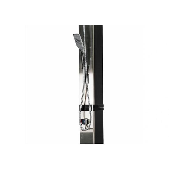 Sprcha je též vybavena ventilem pro možnost nastavení teploty výstupní vody. S ohledem na teplotu vody uvnitř sprchy, která může dosahovat až 60 °C, se doporučuje nejprve natočit ventil vpravo, jeho vychýlením směrem od těla sprchy pustit studenou vodou a následovně vodu domíchat na požadovanou teplotu natáčením ventilu směrem vlevo. Sprcha je vyrobena z plastu.