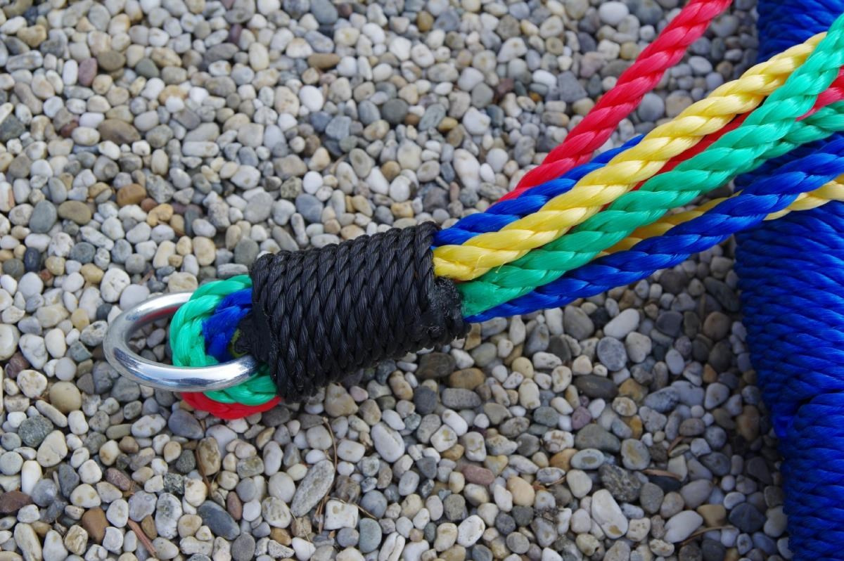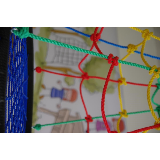 Závěsná houpačka ve tvaru kruhu je svým průměrem 100 cm a nosností až 150 kg ideální nejen pro děti, ale i dospělé. Velká sedací plocha houpačky nabízí volnost při houpání i dostatečný prostor pro lenošení. Houpačka je zavěšena na 4 délkově nastavitelných lanech, která jsou zakončena kovovými kroužky pro zavěšení na nosnou konstrukci.