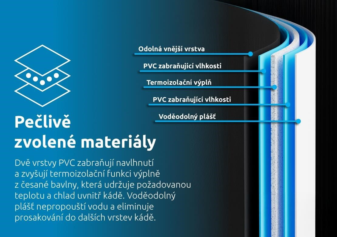 Termoizolační vrstva v podobě česané bavlny udržuje požadovanou teplotu a chlad uvnitř kádě. - PVC zabraňující vlhkosti