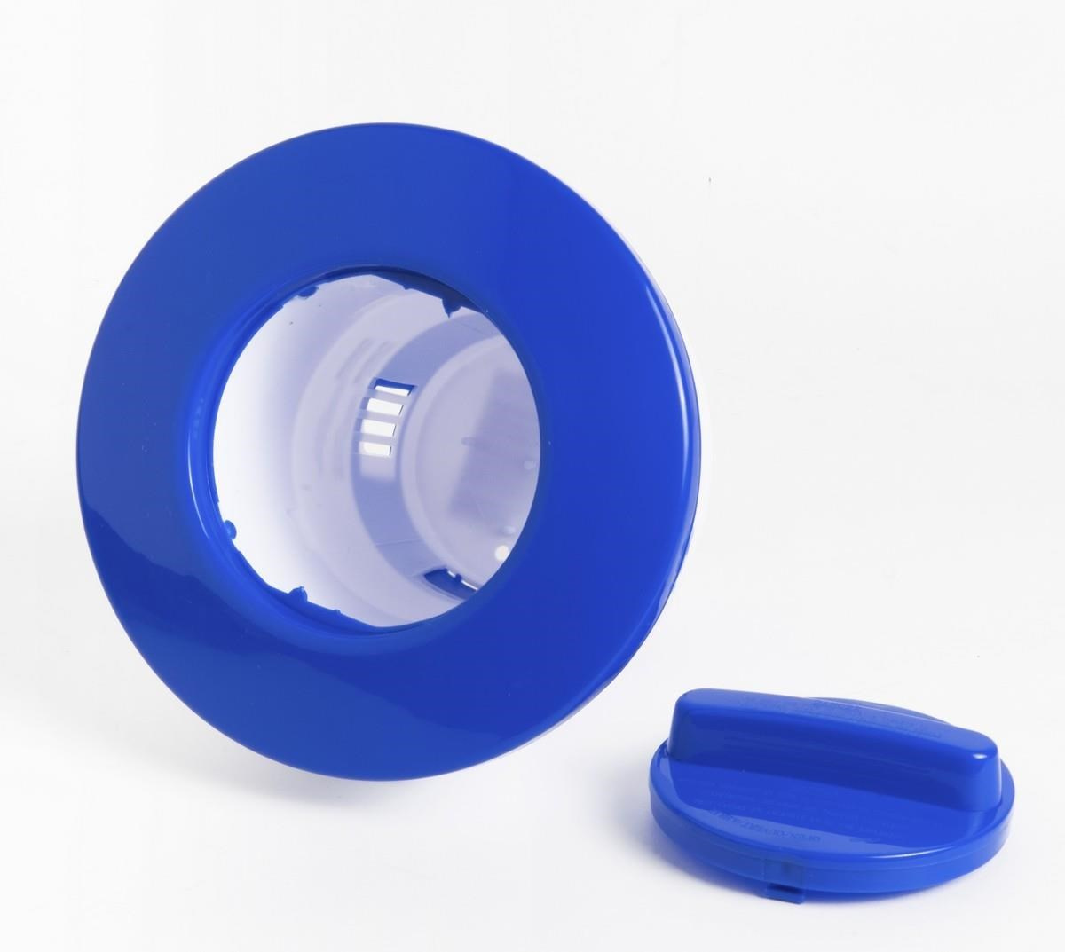Plovoucí plastový dávkovač s regulační mřížkou pro chlorové tablety.