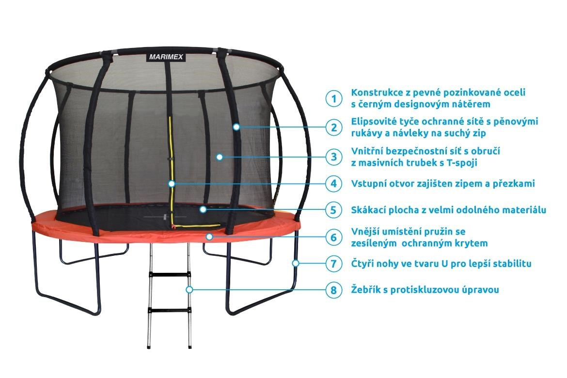 Na bezpečnostní prvky trampolín Marimex Premium je kladen velký důraz, proto jsou řazeny mezi nejbezpečnější a nejspolehlivější na českém trhu.