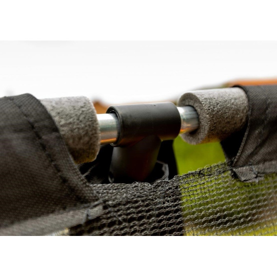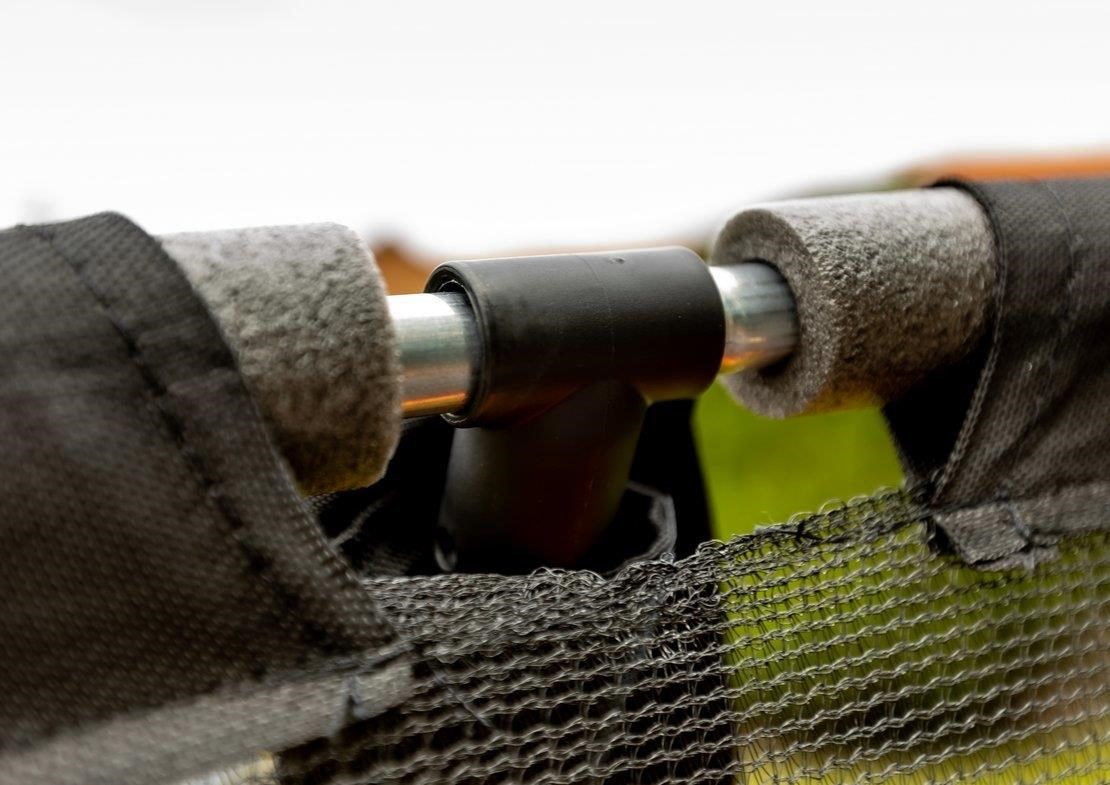 Vnitřní ochrannou síť najdete přímo v balení, nemusíte si ji dokupovat zvlášť. Vnitřní ochranná síť je bezpečnější než vnější síť - brání přístupu skákajícího do části s pružinami. Vstupní prostor je zajištěn třemi přezkami a brání vypadnutí. Tyče jsou obaleny ochranným návlekem z měkčené pěny. Nohy trampolíny jsou samostatné a zvyšují stabilitu celé trampolíny. Spojení tyčí nohou trampolíny a sítě je jištěno speciálními sponami.