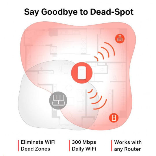 - Eliminujte zóny bez pokrytí Wi-Fi – rozšiřte signály Wi-Fi sítě na dříve nedostupná nebo kabelově obtížně připojitelná místa