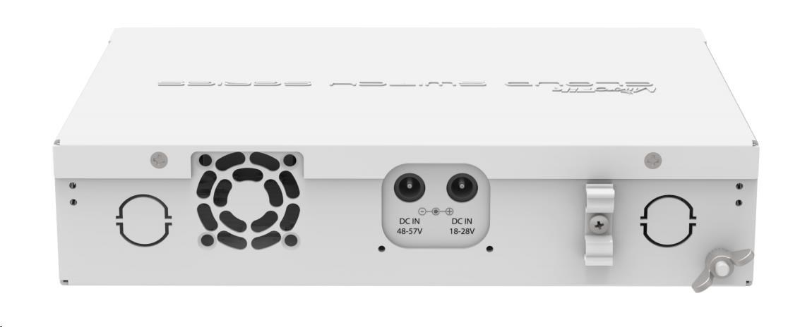 Řada produktů CRS (Cloud Router Switch) úspěšně kombinuje funci routeru a L3 switche. Ve výchozím stavu je všech 8 gigabitových portů nastaveno do switche, který lze komplexně konfigurovat skrz nabídku "Switch" v ROS. Nic Vám ovšem nebrání ve vyčlenění portů pro použití jako samostatné síťové rozhraní a využít tak všech výhod které ROS nabízí (routing, firewall, mangle, queue tree/simple, vpn atd.).