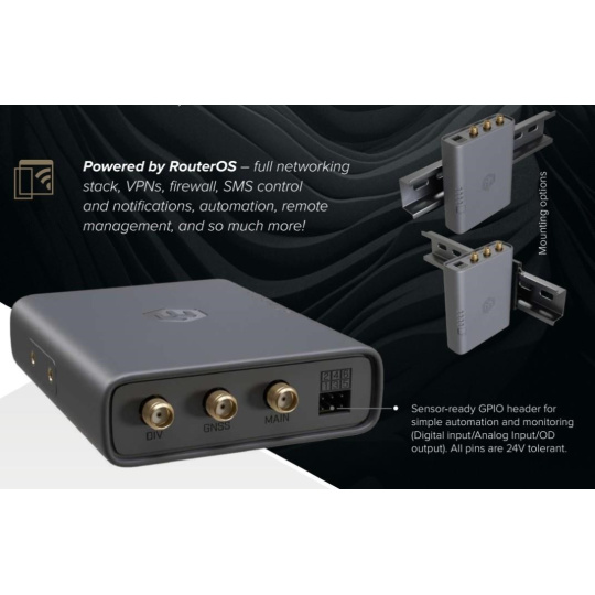 Brána IoT průmyslové třídy s LTE/BLE/GNSS konektivitou pro inteligentní sledování majetku, vzdálené monitorování a efektivní automatizaci. Původně navrženo pro kávovary a prodejní automaty – ideální pro všechny druhy průmyslové automatizace. KNOT Embedded LTE4 je malá, ale výkonná průmyslová LTE brána určená pro integrátory, specialisty na automatizaci a tvůrce systémů IoT. Hodí se do stísněných prostor, montuje se přímo na DIN lištu a poskytuje spolehlivé připojení LTE Cat4 s podporou Bluetooth a GNSS. Použijte ji jako primární bránu, záložní spojení nebo uzel pro sběr dat IoT – vše je poháněno systémem RouterOS pro maximální flexibilitu. Funkce a vlastnosti KNOT Embedded LTE4 je určen pro prostředí, kde je omezený prostor, ale spolehlivost je zásadní: • Infrastruktura inteligentních měst (parkování, senzory, měření) • Monitorování kávovarů a prodejních automatů • Skříně pro průmyslovou automatizaci • Monitorování životního prostředí a veřejných služeb • Sledování vozidel nebo majetku pomocí GNSS • Prodejní kiosky, platební terminály, digitální značení • Záložní připojení LTE pro stávající zařízení Ethernet • Brány IoT pro senzory a majáky BLE Upozornění: IoT brána není plnohodnotným LTE routerem. SIM karta není určená pro vytáčení připojení, ale pro komunikaci v síti IoT. IoT brána nedisponuje LTE modemem. Technické specifikace: Product code: EC25-EU&KNe CPU: ARM 32-bit Cortex A7 up to 1.2 GHz Size of RAM: 256 MB RAM type: DDR Storage: 512 MB Number of 1G Ethernet ports: 1 GNSS interface model: EC25-EU GNSS standard: BeiDou, Galileo, GPS, Glonass RF connector type: SMA female SIM slots: Nano SIM, eSIM Bluetooth version: 5.4 MIMO DL: 2x2 MIMO UL: 1x1 Dimensions: 90 x 70 x 22 mm Operating system: RouterOS v7, License level 3 Operating temperature: -40°C to +70°C Napájení: Number of DC inputs: 2 (PoE-In, USB Type-C (powering only)) PoE-In input Voltage: 12-57 V USB Type-C input voltage: 5 V Power adapter nominal voltage: 5 V Power adapter nominal current: 0.8 A PoE-in: 802.3af/at Max power consumption: 7 W EC25-EU (EMEA) podporovaná pásma: LTE modem: EC25-EU TAC: 86554604 LTE Category: 4 (150Mbps Downlink, 50Mbps Uplink) LTE FDD bands: 1 (2100MHz) / 3 (1800MHz) / 7 (2600MHz) / 8 (900 MHz) /20 (800MHz) / 28A (700 MHz) LTE TDD bands: 38 (2600MHz) / 40 (2300MHz) / 41 (2500MHz) 3G Category: R8 (42.2Mbps Downlink, 5.76Mbps Uplink) 3G bands: 1 (2100MHz) / 8 (900MHz) 2G Category: Class12 2G bands: 3 (1800MHz) / 8 (900MHz) Internet věcí (anglicky Internet of Things, zkratka IoT) je termínem pro moderní přístroje ovladatelné i na dálku pomocí internetu. Snadno je tak obsloužíte pomocí svého chytrého telefonu nebo je jednoduše připojíte k centrální jednotce. Umožní tak snadno zautomatizovat věci, o které byste se jinak museli postarat sami. Jedná se o technologický koncept umožňující realizaci takzvaného "inteligentního domu" (automatické zhasínání světel, ovládání vytápění apod.). Umožňuje řídit klimatizaci, vyhřívání vašeho bazénu, ohřev vody, pečovat o vaše akvárium, obsluhovat nastavení alarmu či mechanických zámků. Pokud si nejste jistí, zda jste v ranním shonu vypnuli žehličku, můžete na dálku odpojit od sítě jednotlivé zásuvky. Vaše lednička vás dokáže upozornit na chybějící potraviny a připravovat aktualizovaný nákupní seznam. Upozornění Výrobce Mikrotik neposkytuje záruku na zařízení poškozená přepětím. Zařízení je třeba adekvátně chránit proti indukovanému elektrostatickému přepětí či přepěťovým špičkám na silovém vedení. Pro venkovní instalace používat výhradně stíněnou kabeláž (FTP/SFTP), jednotky korektně uzemnit (užití integrovaného zemnícího členu, ethernetové přepěťové ochrany). Zařízení vždy provozujte s poslední výrobcem publikovanou verzí (výrobcem označenou "Stable") operačního systému RouterOS. Taková verze garantuje nejoptimálnější funčknost, obsahuje opravené chyby z verzí předchozích a výkonová i funční vylepšení..